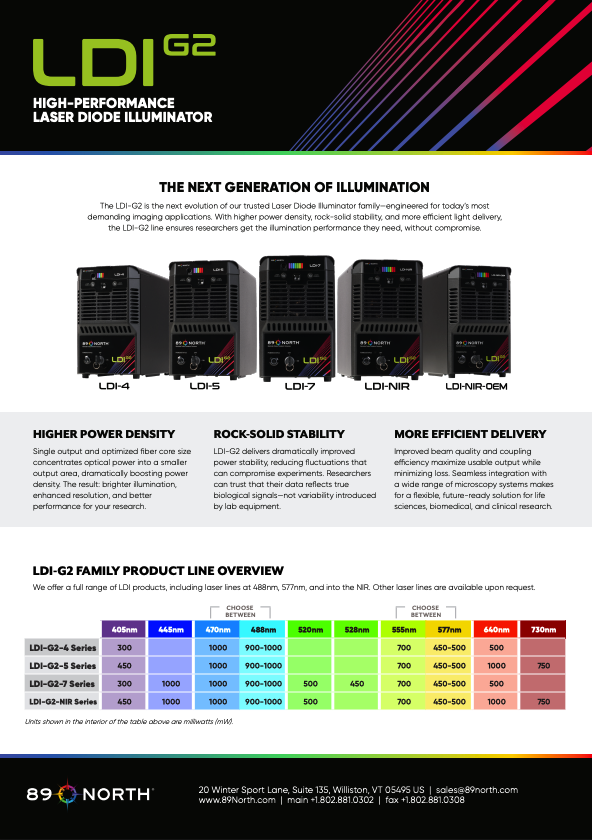 Our new LDI-G2 Series unveils a major leap forward in precision illumination technology, building on the proven performance of our original LDI platform while introducing breakthrough improvements in control, stability, and power delivery. Designed for researchers pushing the limits of fluorescence and live-cell imaging, the LDI-G2 delivers the intensity, consistency and precision needed for today’s most demanding applications.